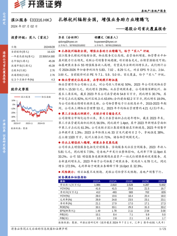 【开源证券】【20240702】滨江服务(03316.HK)港股公司首次覆盖报告:扎根杭州辐射全国,增值业务助力业绩腾飞-21页 行业研究
