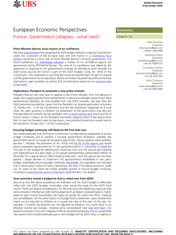 【UBS Europe SE】【20241204】European Economic Perspectives France Government collapses - what next?-12页 宏观策略