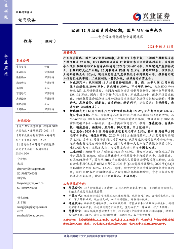 【兴业证券】【20210111】欧洲12月注册量再超预期,国产MY强势来袭-29页 行业研究