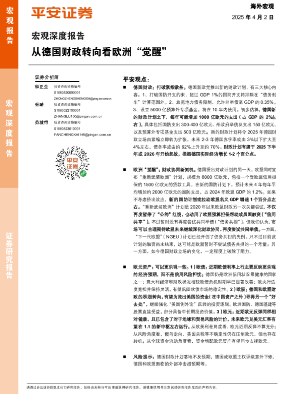 【平安证券】【20250402】宏观深度报告:从德国财政转向看欧洲“觉醒”-16页 宏观策略
