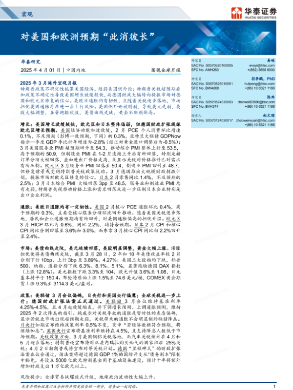【华泰证券】【20250401】宏观图说全球月报:对美国和欧洲预期“此消彼长”-14页 宏观策略