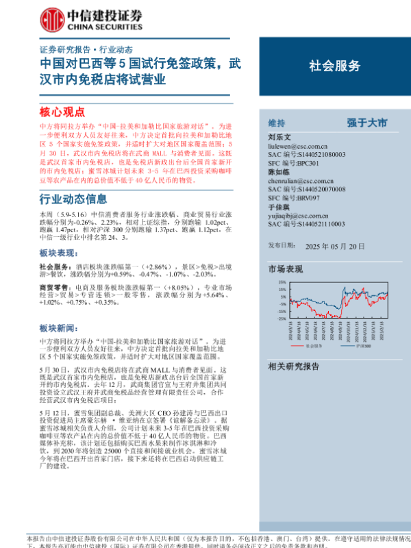 【中信建投证券】【20250520】社会服务行业:中国对巴西等5国试行免签政策,武汉市内免税店将试营业-26页 证券期货研究报告