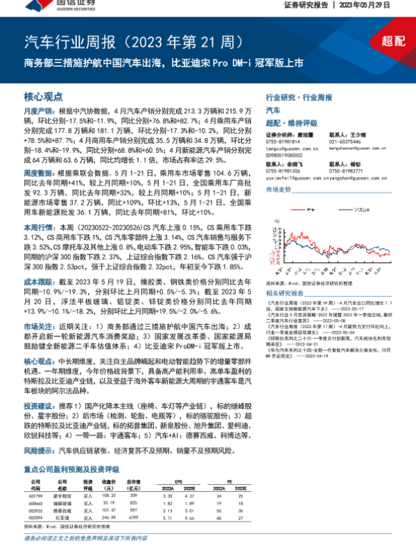 【国信证券】【20230529】汽车行业周报(2023年第21周):商务部三措施护航中国汽车出海,比亚迪宋Pro DM-i冠军版上市-36页 行业研究