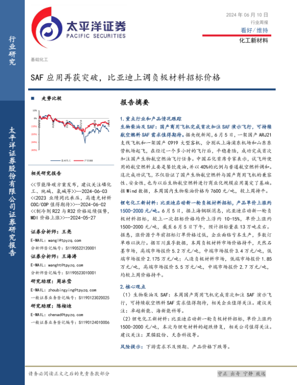 【太平洋证券】【20240610】20240610-太平洋-化工新材料行业周报:SAF应用再获突破,比亚迪上调负极材料招标价格-27页 行业研究