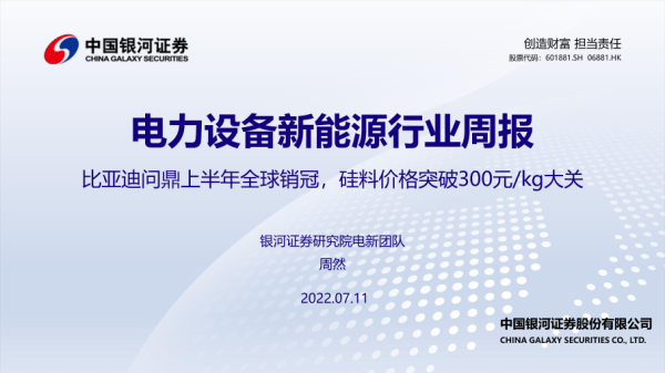 【银河证券】【20220711】电力设备新能源行业周报:比亚迪问鼎上半年全球销冠,硅料价格突破300元/kg大关-52页 行业研究
