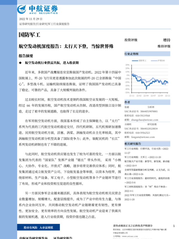 【中航证券】【20221129】国防军工行业航空发动机深度报告:太行天下脊,当惊世界殊-104页 行业研究