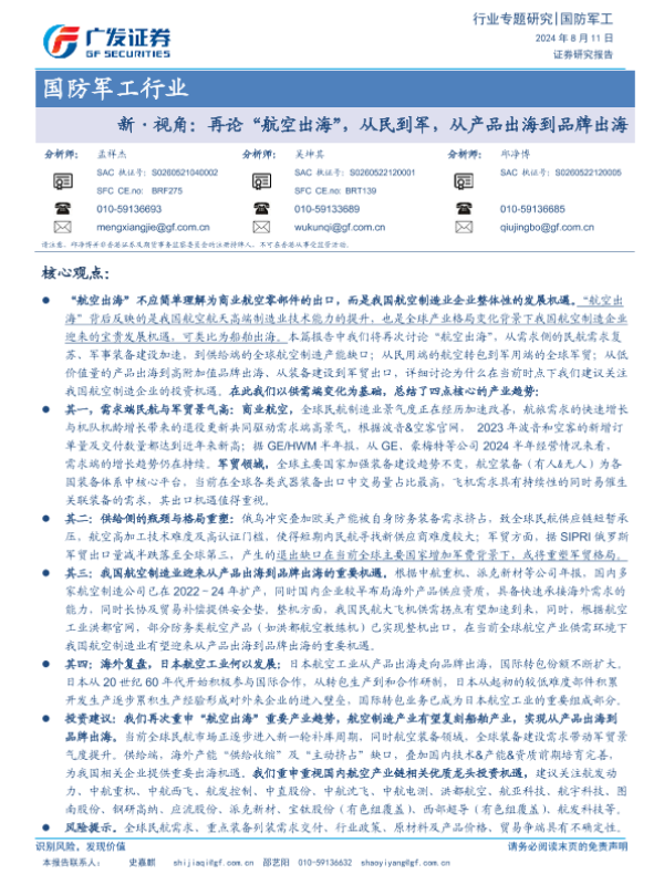 【广发证券】【20240811】国防军工行业:新·视角,再论“航空出海”,从民到军,从产品出海到品牌出海-35页 行业研究
