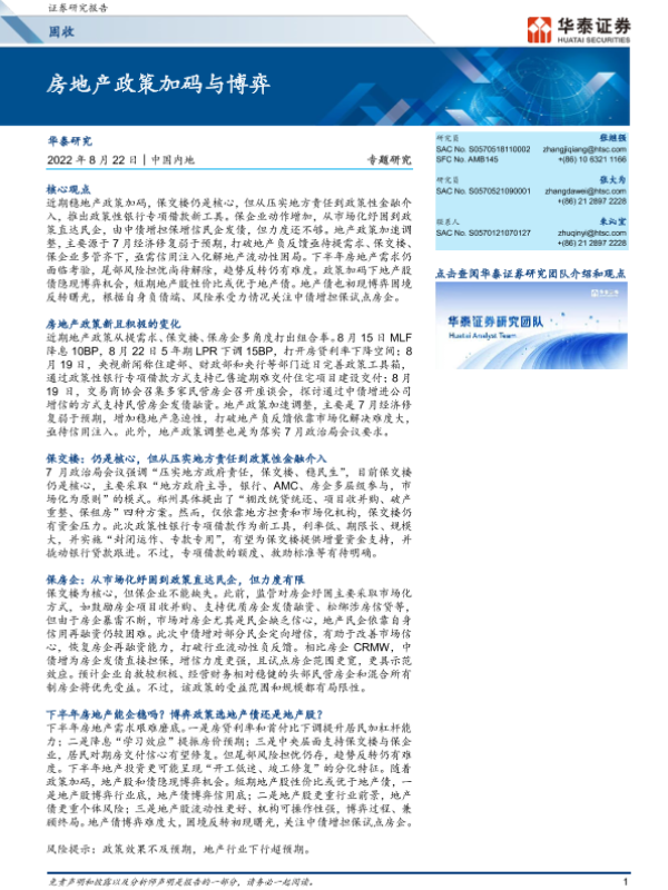 【华泰证券】【20220822】专题研究:房地产政策加码与博弈-15页 行业研究