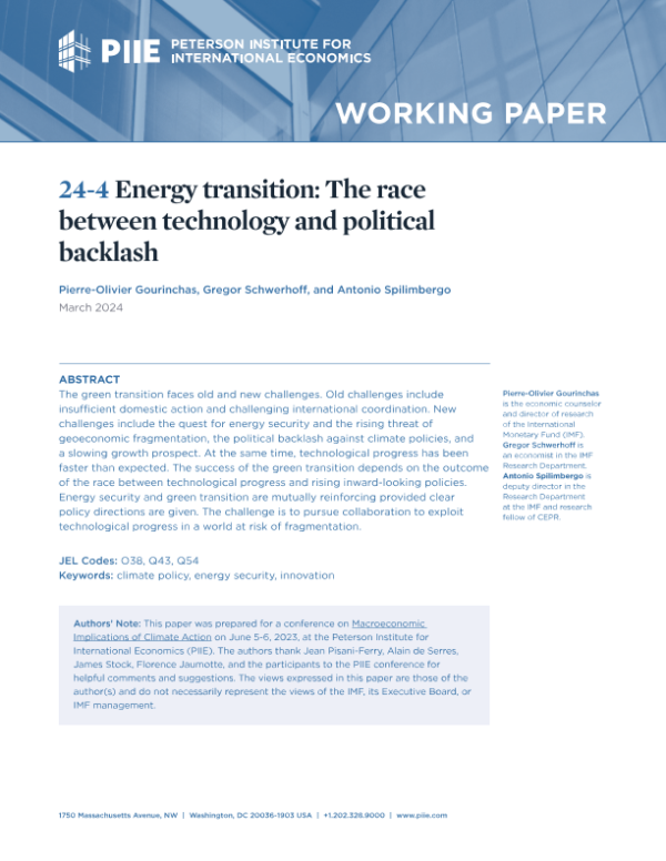 【彼得森经济研究所】【202403】能源转型:技术与政治反弹之间的竞赛-28页 行业研究