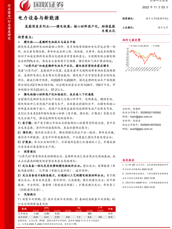 【国联证券】【20221103】电力设备与新能源行业氢能深度系列五:膜电极篇,核心材料国产化,助推氢能车商业化-31页 行业研究