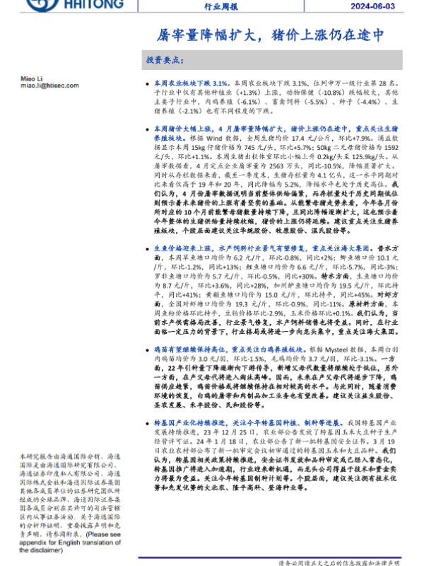 【海通国际】【20240603】农业:屠宰量降幅扩大,猪价上涨仍在途中-18页 行业研究