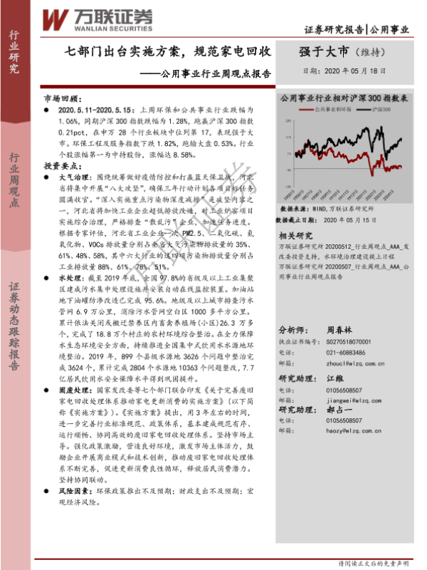 【万联证券】【20200518】七部门出台实施方案,规范家电回收-11页 行业研究