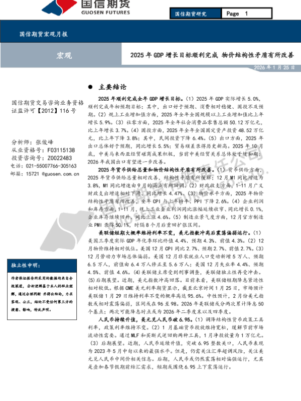 【国信期货】【202601】2025年GDP增长目标顺利完成 物价结构性矛盾有所改善-18页 证券期货研究报告