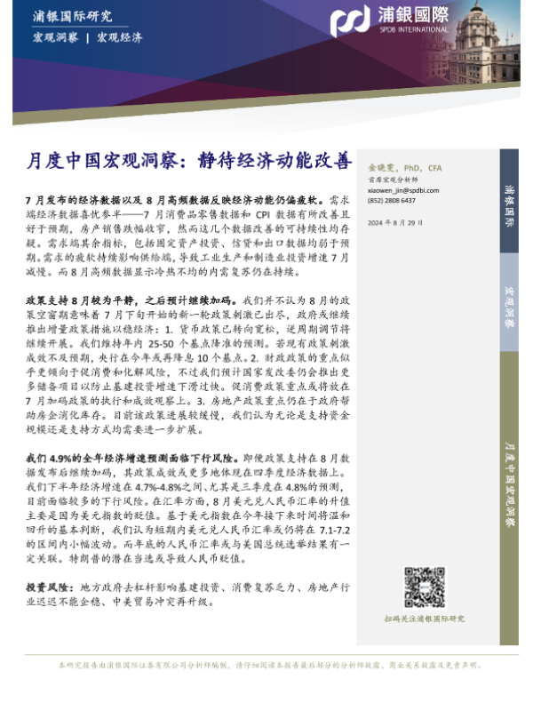 【浦银国际】【20240829】月度中国宏观洞察:静待经济动能改善-10页 行业研究