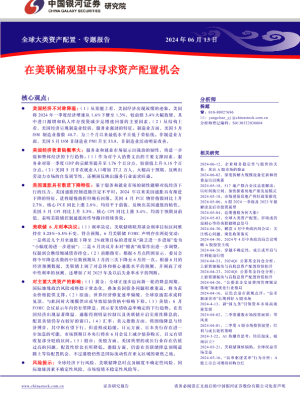 【银河证券】【20240613】全球大类资产配置专题报告:在美联储观望中寻求资产配置机会-12页 行业研究