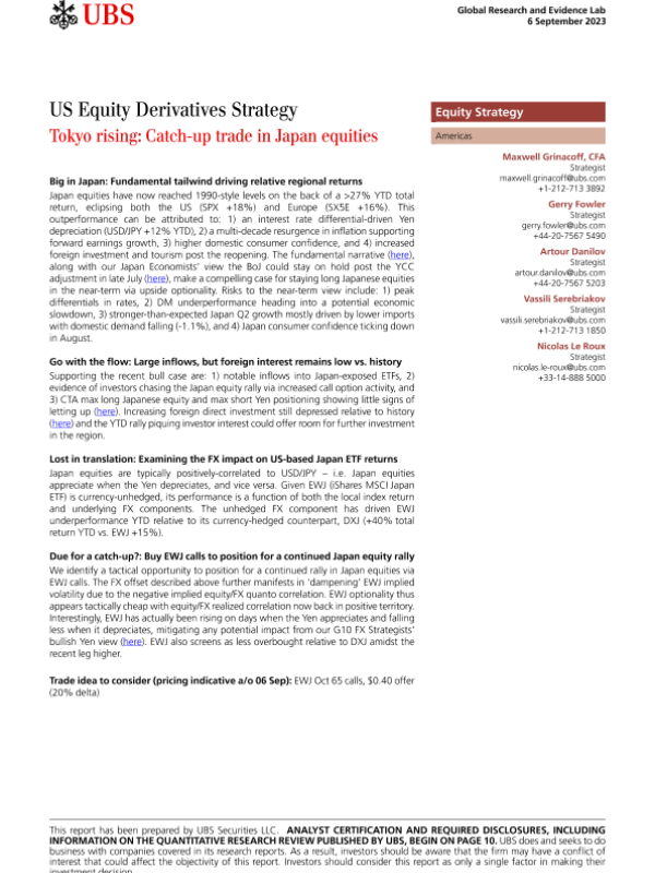 【UBS Securities LLC】【20230906】Tokyo rising Catch-up trade in Japan equities-13页 行业研究