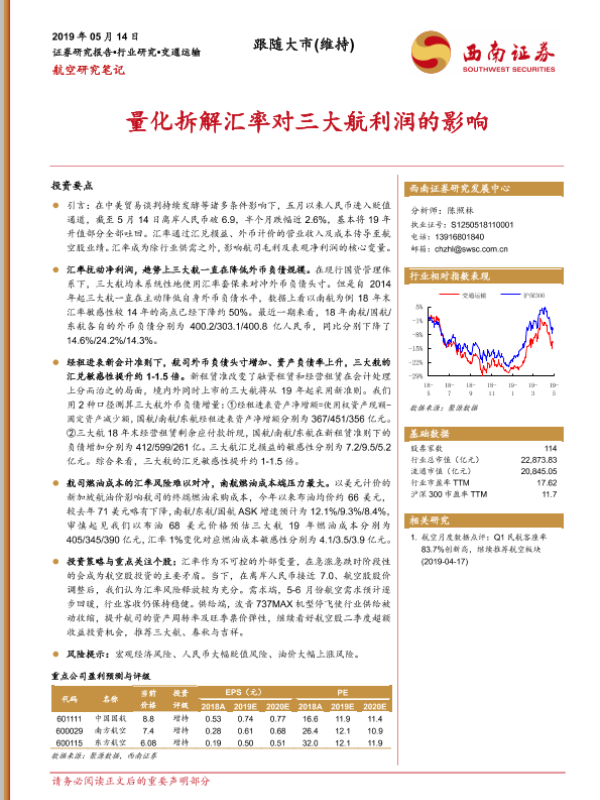 【西南证券】【20190514】量化拆解汇率对三大航利润的影响-15页 行业研究