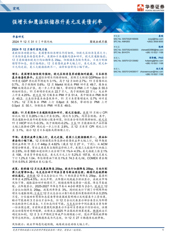 【华泰证券】【20241231】宏观图说全球月报:强增长和鹰派联储推升美元及美债利率-14页 宏观策略