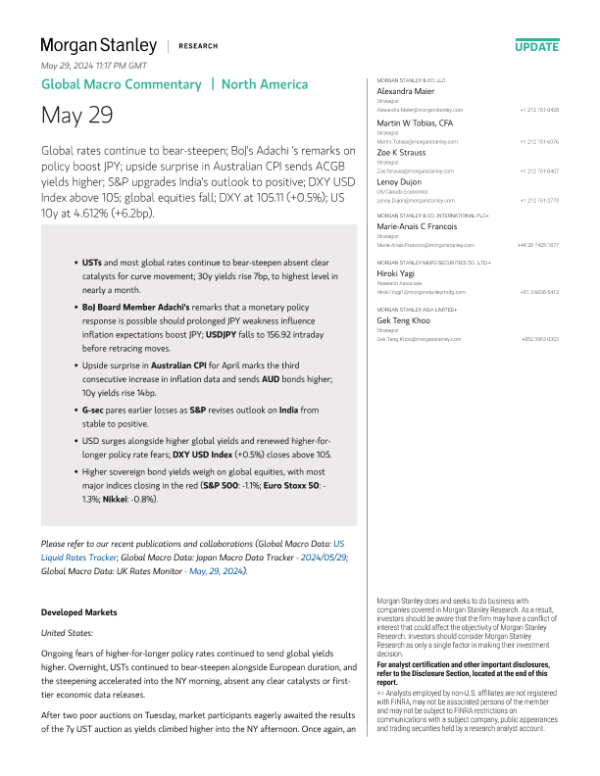 【Morgan Stanley】【20240529】Morgan Stanley Fixed-Global Macro Commentary May 29-24页 行业研究