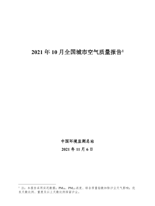 【中华人民共和国生态环境部】【20211106】2021年10月全国城市空气质量报告-31页 行业研究