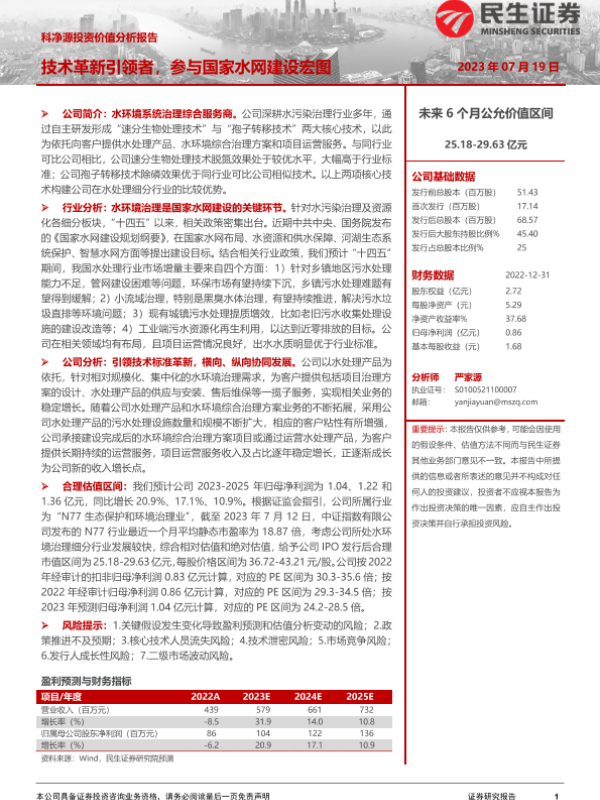 【民生证券】【20230719】科净源投资价值分析报告:技术革新引领者,参与国家水网建设宏图-55页 行业研究