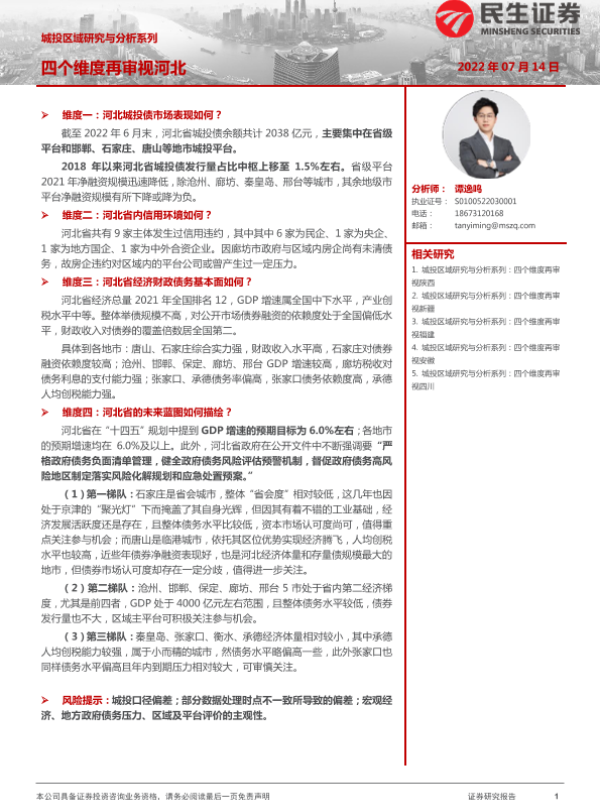 【民生证券】【20220714】城投区域研究与分析系列:四个维度再审视河北-31页 行业研究
