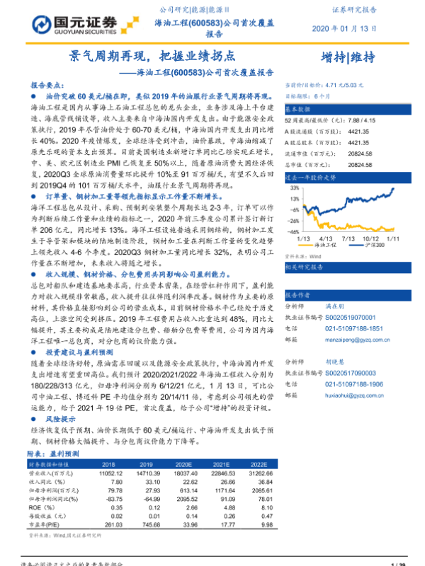 【国元证券】【20210113】景气周期再现,把握业绩拐点——海油工程(600583)公司首次覆盖报告-39页 行业研究