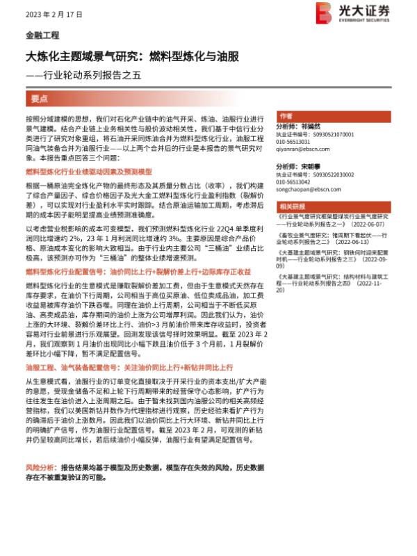 【光大证券】【20230217】行业轮动系列报告之五:大炼化主题域景气研究,燃料型炼化与油服-19页 行业研究