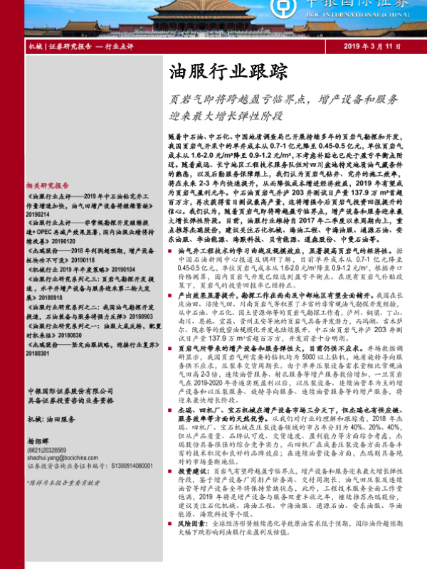 【中银证券】【20190311】油服行业跟踪:页岩气即将跨越盈亏临界点,增产设备和服务迎来最大增长弹性阶段-5页 行业研究