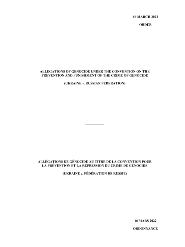 【联合国国际法院】【20220316】ALLEGATIONS OF GENOCIDE UNDER THE CONVENTION ON THE PREVENTION AND PUNISHMENT OF THE CRIME OF GENOCIDE (UKRAINE v. RUSSIAN FEDERATION)-21页 法院判决
