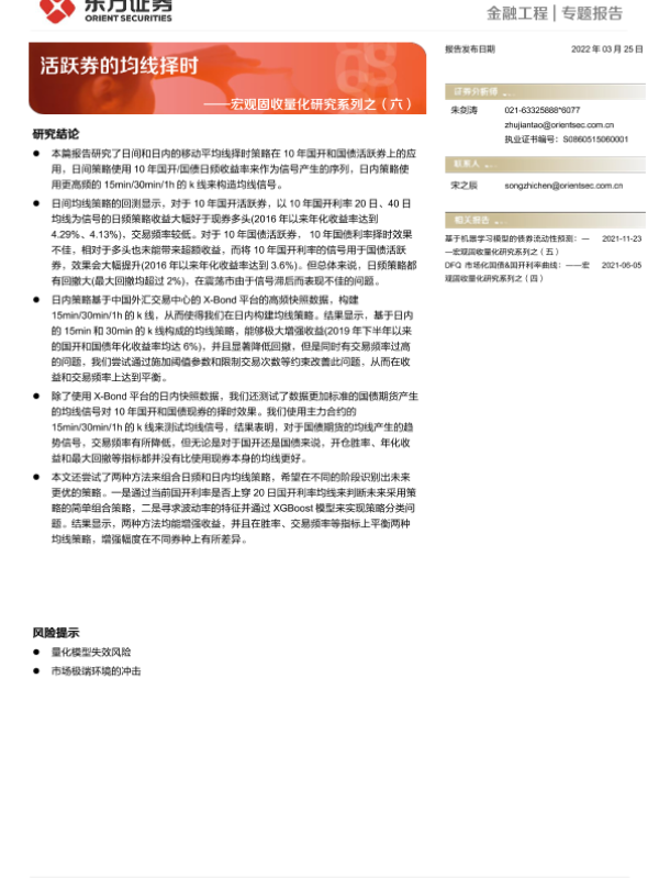 【东方证券】【20220325】宏观固收量化研究系列之(六):活跃券的均线择时-25页 行业研究