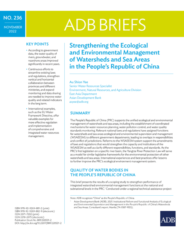 【Asian Development Bank】【202211】加强中华人民共和国流域和海域的生态环境管理-12页 行业研究