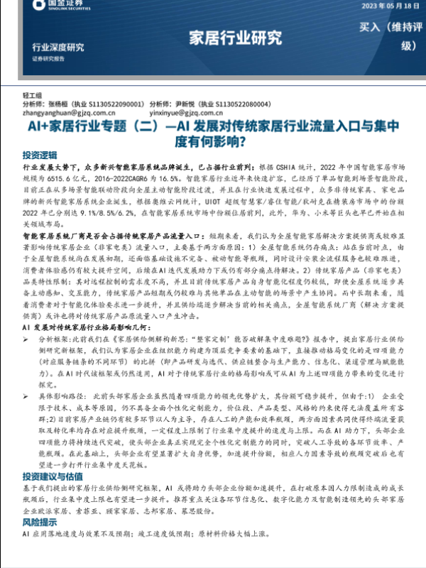 【国金证券】【20230518】AI+家居行业专题(二):AI发展对传统家居行业流量入口与集中度有何影响?-23页 行业研究