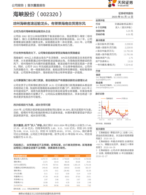 【天风证券】【20230111】琼州海峡客滚运输龙头,有望乘海南自贸港东风-18页 行业研究