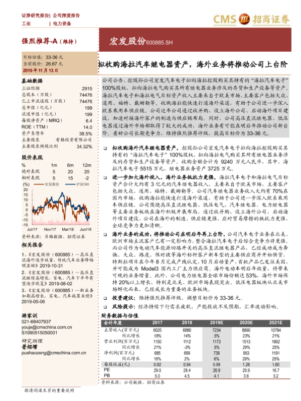 【海通证券】【20191113】拟收购海拉汽车继电器资产,海外业务将推动公司上台阶-10页 行业研究
