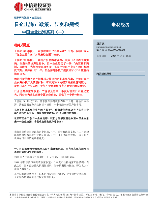 【中信建投证券】【20240416】中国企业出海系列(一),日企出海:政策、节奏和规模-21页 行业研究