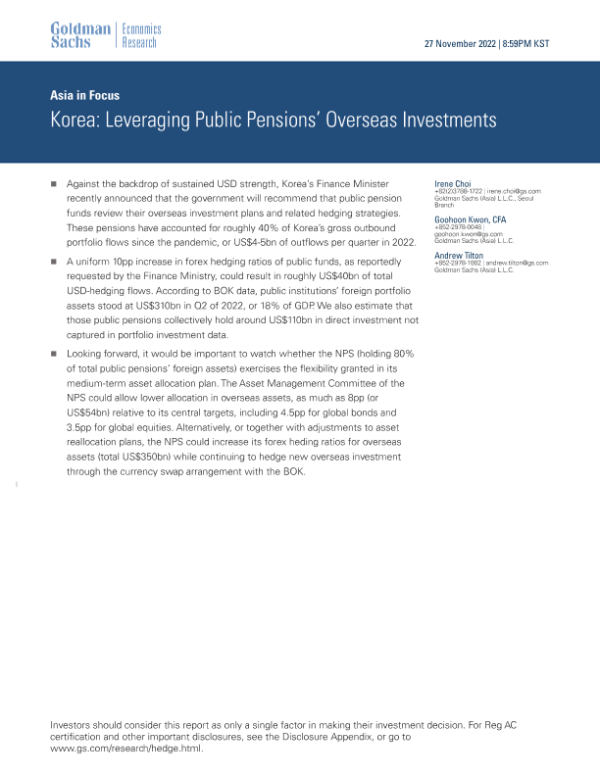【Goldman Sachs】【20221127】Korea Leveraging Public Pensions’ Overseas Investments-8页 行业研究