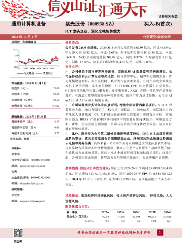 【山西证券】【20241204】ICT龙头企业,深化全栈智算能力-19页 公司研究