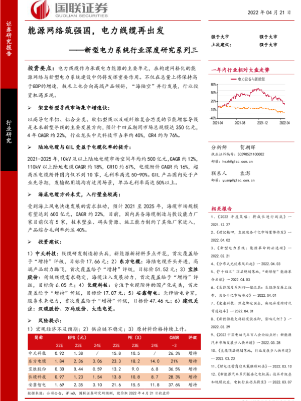 【国联证券】【20220421】新型电力系统行业深度研究系列三:能源网络筑强国,电力线缆再出发-32页 行业研究