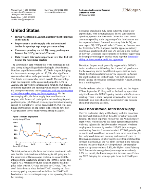 【J.P. Morgan】【20230901】North America Economic Research Global Data Watch-11页 行业研究