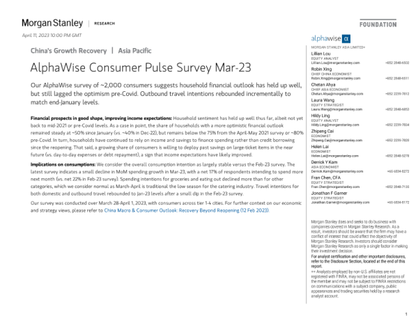 【Morgan Stanley】【20230328】Stanley Fixed-China's Growth Recovery AlphaWise Consumer Pulse Survey Mar-23-34页 行业研究