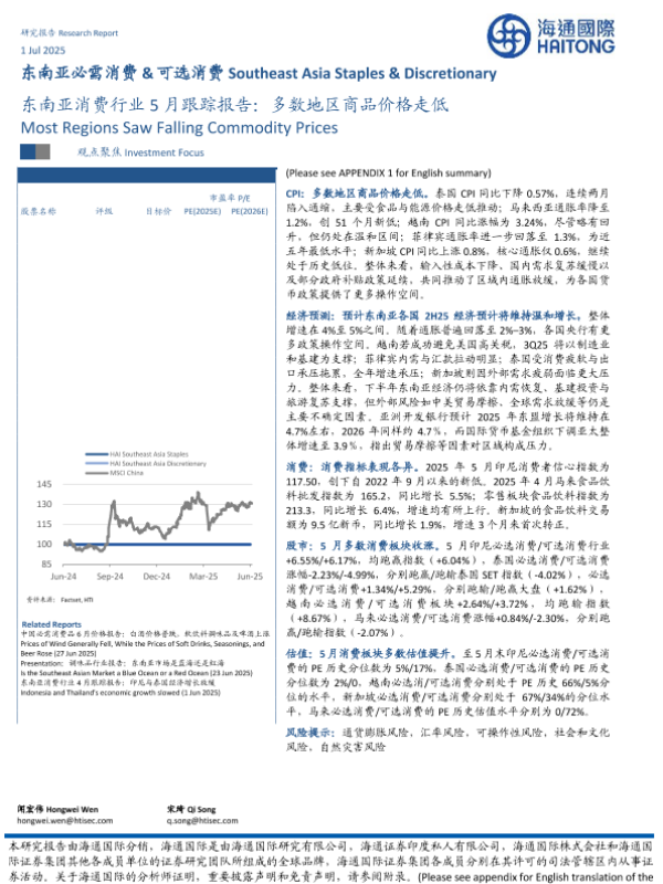 【海通国际】【20250701】东南亚消费行业5月跟踪报告:多数地区商品价格走低-29页 行业研究