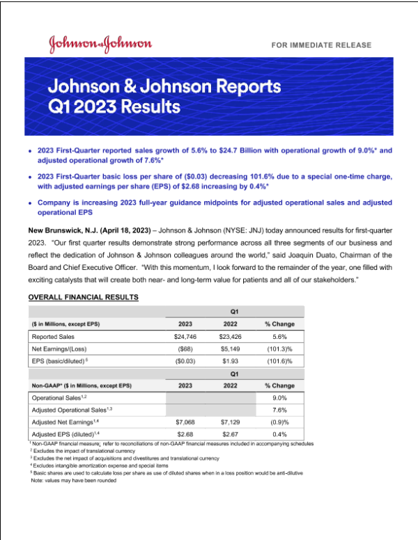 【Johnson & Johnson】【20230418】强生 2023年第一季度报告-22页 行业研究
