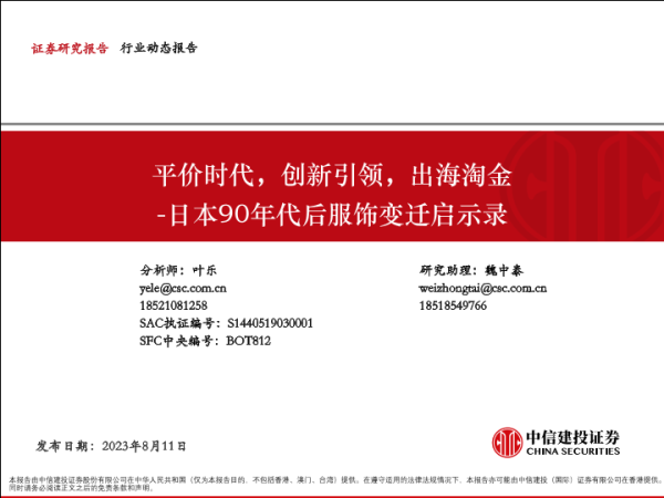 【中信建投证券】【20230811】服装行业日本90年代后服饰变迁启示录:平价时代,创新引领,出海淘金-40页 行业研究