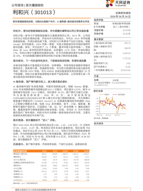 【天风证券】【20240604】利和兴(301013)领先智能装备供应商,与国内头部客户合作,AI服务器+液冷超充有望多点开花-19页 行业研究