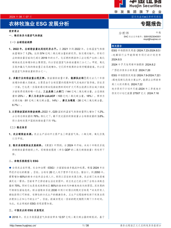 【华金证券】【20240807】农林牧渔业ESG发展分析-38页 行业研究