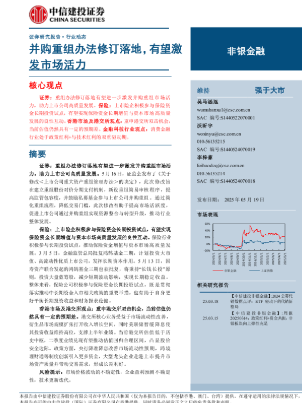 【中信建投证券】【20250519】非银金融行业:并购重组办法修订落地,有望激发市场活力-25页 行业研究