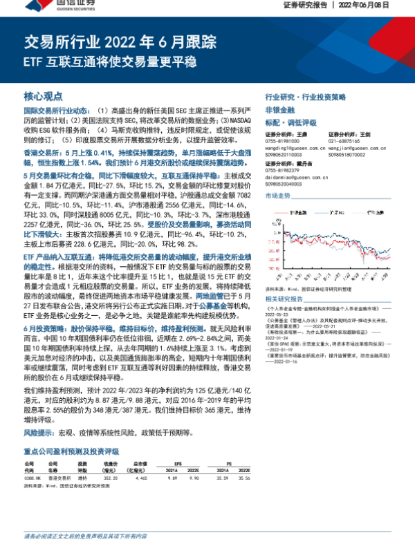 【国信证券】【20220608】交易所行业2022年6月跟踪:ETF互联互通将使交易量更平稳-11页 行业研究