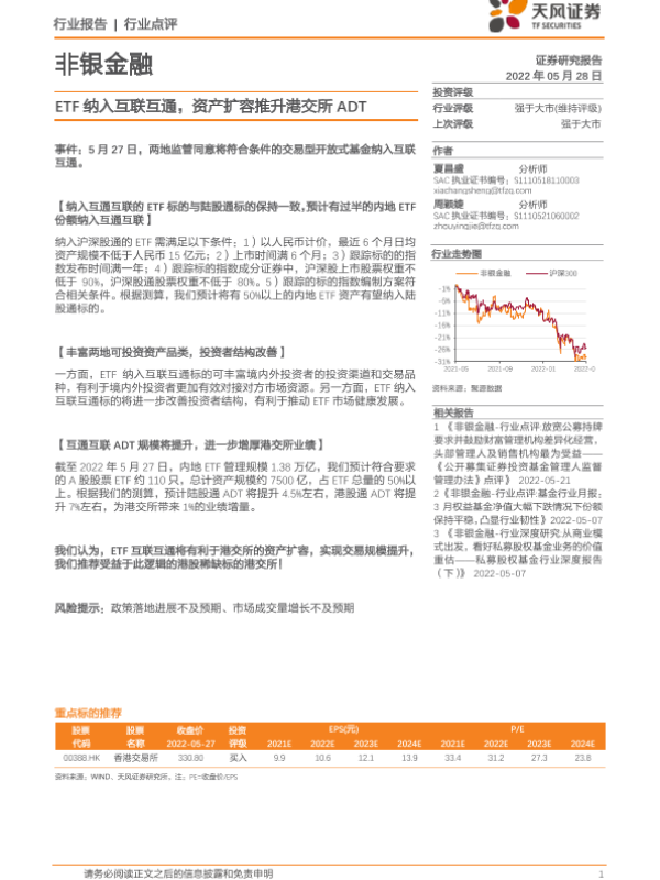 【天风证券】【20220528】ETF纳入互联互通,资产扩容推升港交所ADT-2页 行业研究