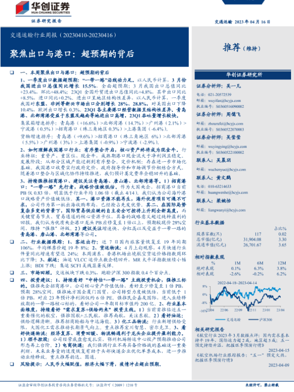【华创证券】【20230416】交通运输行业周报:聚焦出口与港口:超预期的背后-24页 行业研究